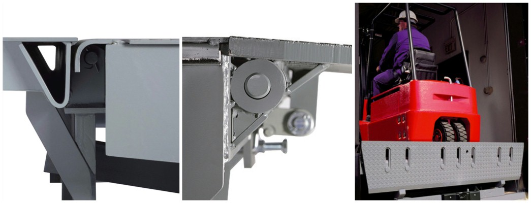 通过半径恒定的尾部铰链、两点冠状控制和经过优化的延伸板倒角设计确保装卸平台与货车之间的平滑过度。